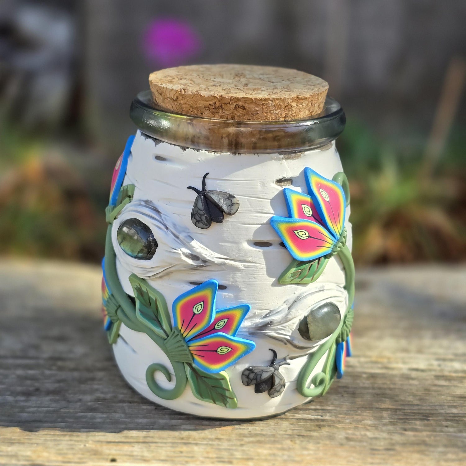 These lovely jars are hand sculpted from colored polymer clay and my...