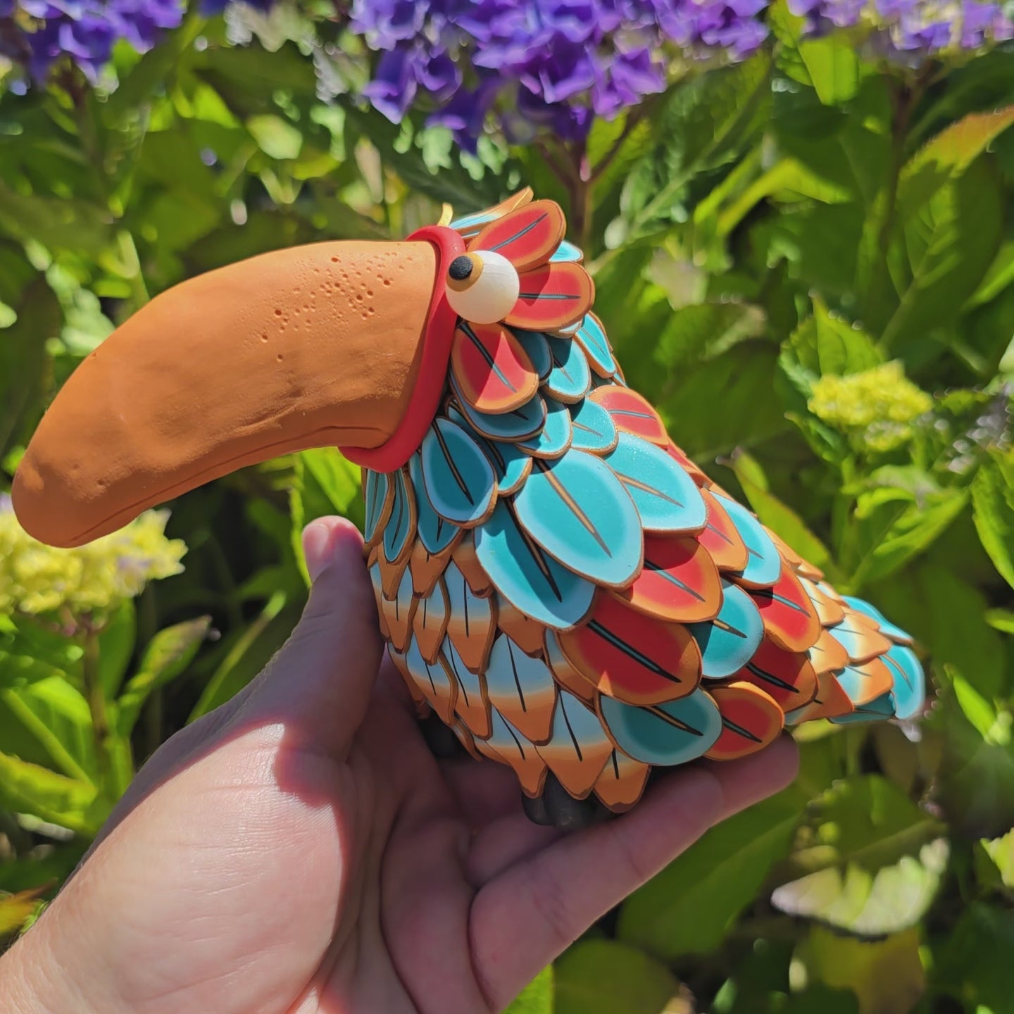 Created from colored polymer clay millefiori over an armature. No paint. One of a kind.